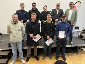 Wie üblich, erhielten die Prüflinge der GPII der Kfz-MechatronikerInnen (Schwerpunkte System- und Hochvolttechnik und Pkw-Technik) und Karosserie- und FahrzeugbaumechanikerInnen (Berufsschule für Fahrzeugtechnik, Eisenbahn und Fahrbetrieb) Ihre Zeugnisse in einer gemeinsamen Feier. Herr Brunner, Herr Trost und Herr Wallner übernahmen die Ehrung der Besten.