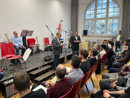 Wie üblich, erhielten die Prüflinge der GPII der Kfz-MechatronikerInnen (Schwerpunkte System- und Hochvolttechnik und Pkw-Technik) und Karosserie- und FahrzeugbaumechanikerInnen (Berufsschule für Fahrzeugtechnik, Eisenbahn und Fahrbetrieb) Ihre Zeugnisse in einer gemeinsamen Feier. Herr Dr. Müller verabschiedete die AbsolventInnen, Herr Brunner, Herr Trost und Herr Wallner übernahmen die Ehrung der Besten. Zum ersten Mal sorgte die hauseigene Band für eine feierliche musikalische Umrahmung. Die musikalischen Drbietungen erhielten kräftigen Applaus.